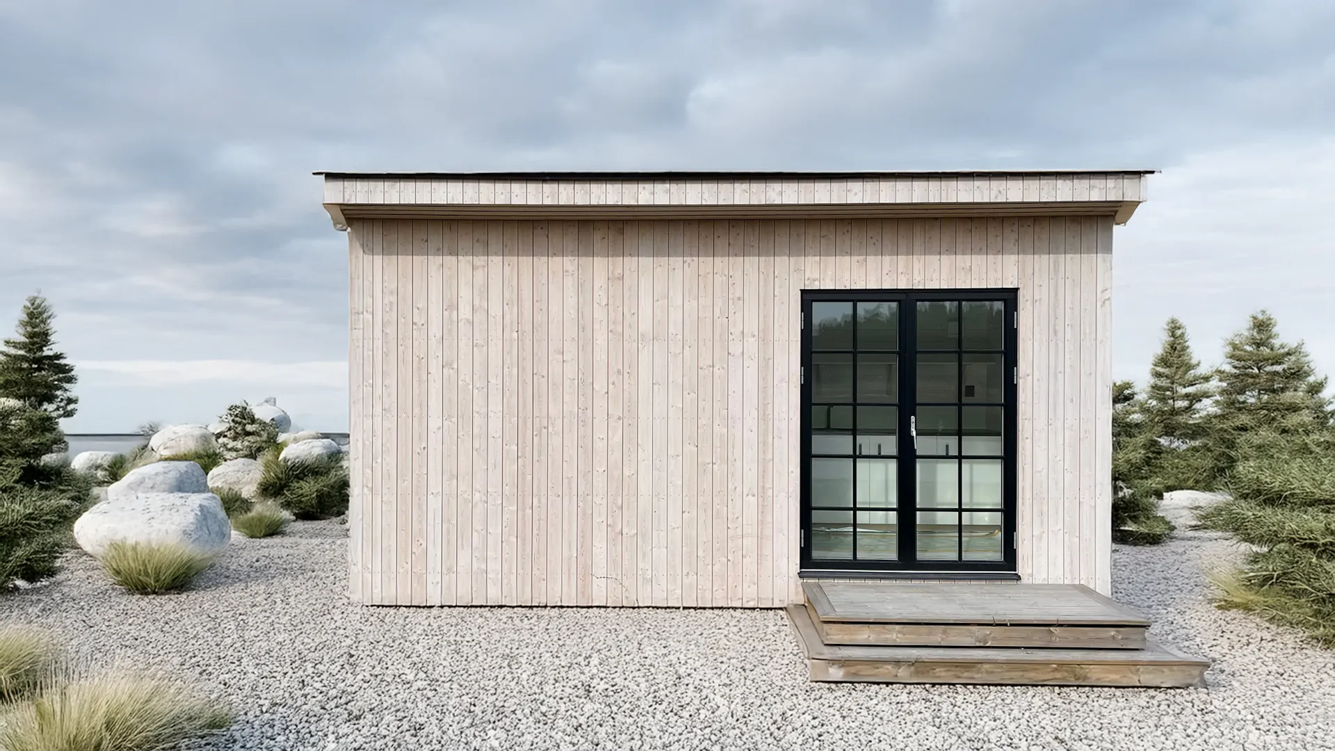 Den gotländska naturen har gett inspiration till husens former och fina detaljer. Det karga landskapet av kalksten och den skiftande naturen längs kusten. Gotländskt kärnvirke, kalksten och jordnära, naturliga färger.