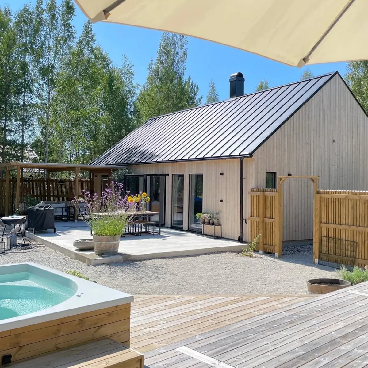 Med tre sovrum, kök, badrum, kamin, extra toalett alt. förråd